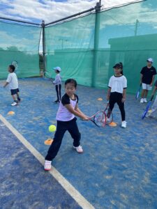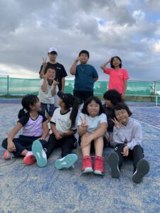 今日初めて会った子も仲良くなり、各々テニスやテニピン、鬼ごっこ等をしていました!