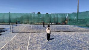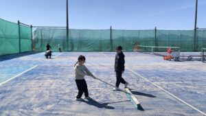 テニスを時間いっぱい頑張った後は、皆で交代しながらコート整備を行いました。