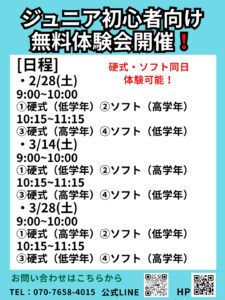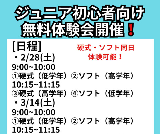 【ジュニア初心者向け無料体験会日程】