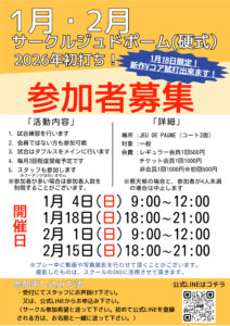 ※1月4日のサークルジュドポームに参加されたい方は、1月3日までにご連絡ください。