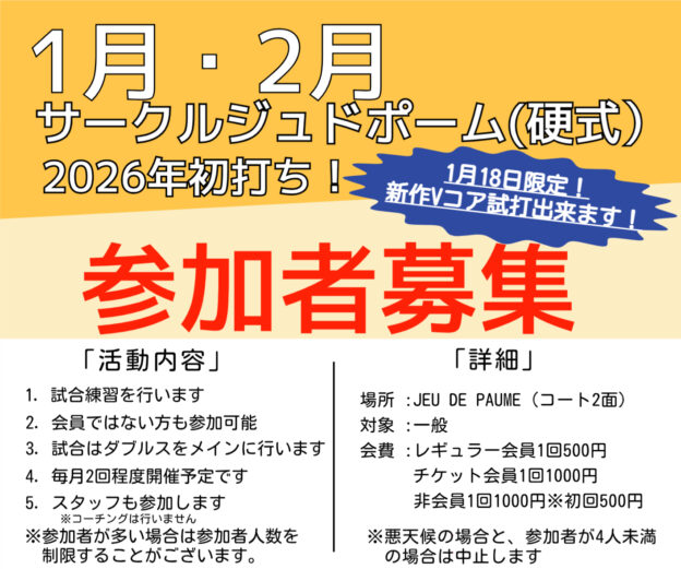 2026年1月と2月のサークルジュドポームの日程です。