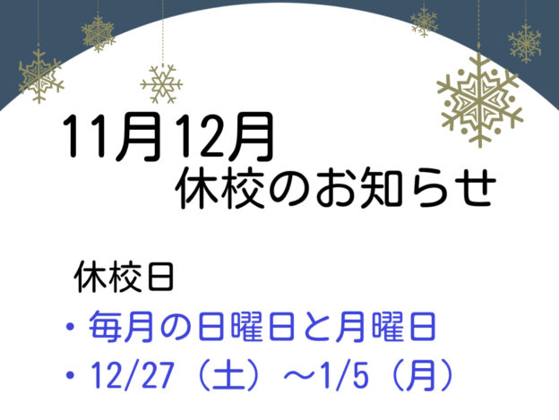 日曜日と月曜日に加え、下記日程を休校とさせて頂きます。